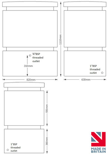 All Ecosure water butt are manufactured in the UK from UV stabilised virgin polymer. This means the colours will not fade. They are guaranteed frostproof too, so no need to replace your water butts after a hard frost. The fully removable lid allows impatient gardeners to dunk a watering can, but use the raised outlet on one of the butts to fit the quality brass tap kit. The rainwater diverter can be fitted wherever appropriate, without compromising the integrity of the water butt - just make sure there is a flat internal surface so that the connector can fit flush.