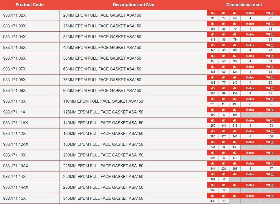 EPDM Full Face ASA150 Gasket available in a range of sizes and essential to create a secure seal between two flanges. Manufactured from long-lasting rubber.